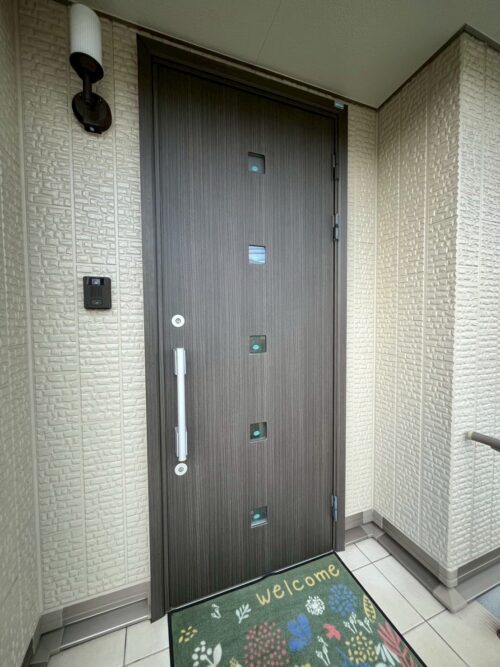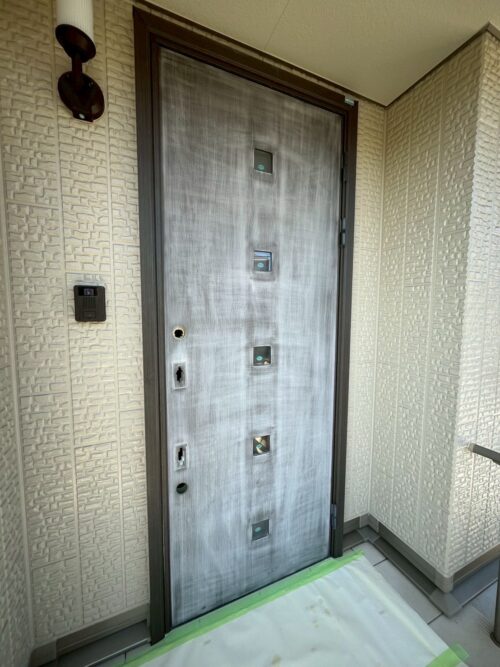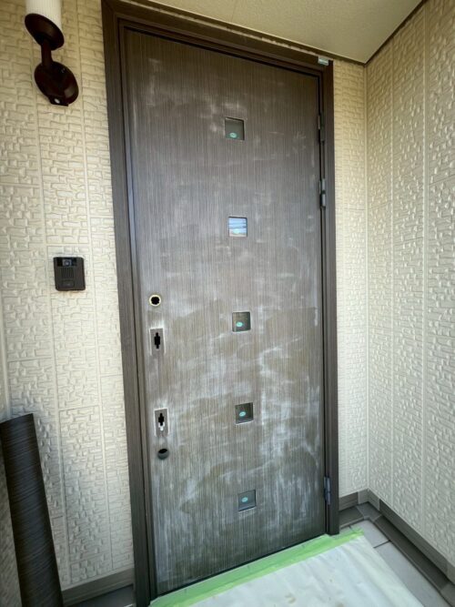 既存ドアを取り外すことなく、下地処理から丁寧に施工することで、新品のような美しい仕上がりに!!