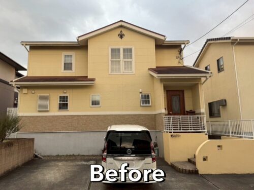 施工前は外壁全体に色あせやくすみが見られ、建物の印象が少し暗くなっていました。