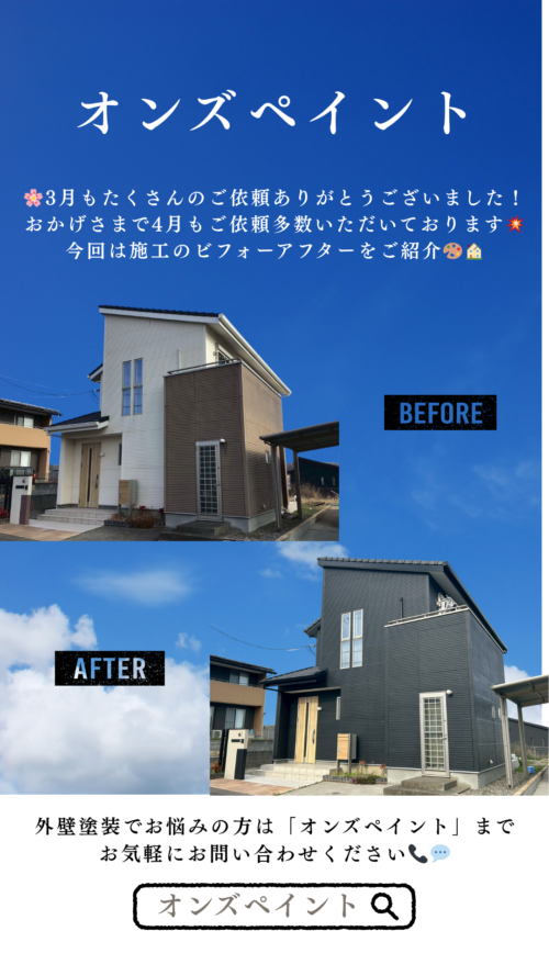 【外壁塗装施工事例|3月も多数のご依頼ありがとうございました!】