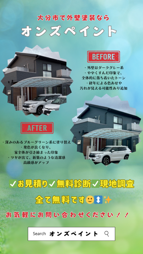 2026.04.27 【大分市で外壁塗装ならオンズペイントへ!施工事例をご紹介✨】こんにちは、オンズペイントです🏠🎨今回は、大分市でご依頼いただいた外壁塗装の施工事例をご紹介いたします! 施工前はダークグレー系の落ち着いた外観でしたが、経年による色あせやくすみが見られま […]