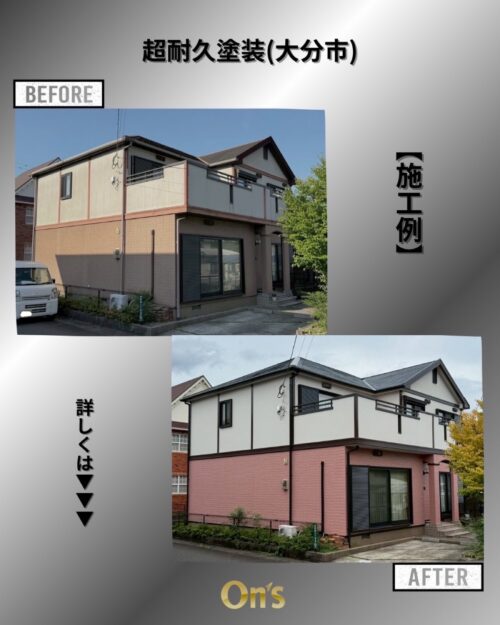 2025.10.14 【超耐久塗装施工例】こんにちは!オンズペイントです😊 大分市にて、外壁の超耐久塗装工事を行いました。 経年により外壁全体の色あせや汚れが目立っていましたが、超耐候性塗料を使用することで、耐久性と美観を両立した仕上がりに。 ホ […]