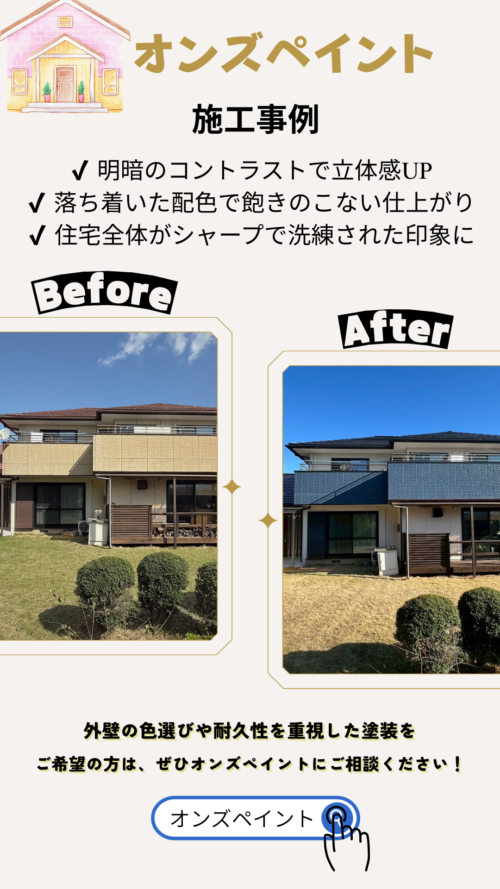 2026.01.20 色選びと耐久性にこだわるオンズペイント【外壁塗装をご検討中の方へ|オンズペイント施工事例】 外壁塗装は、住まいの印象を美しく整えるだけでなく、 雨風や紫外線から住宅を守り、建物の寿命を延ばすために欠かせないメンテナンスです。 今回の施工事例では、明暗のコント […]