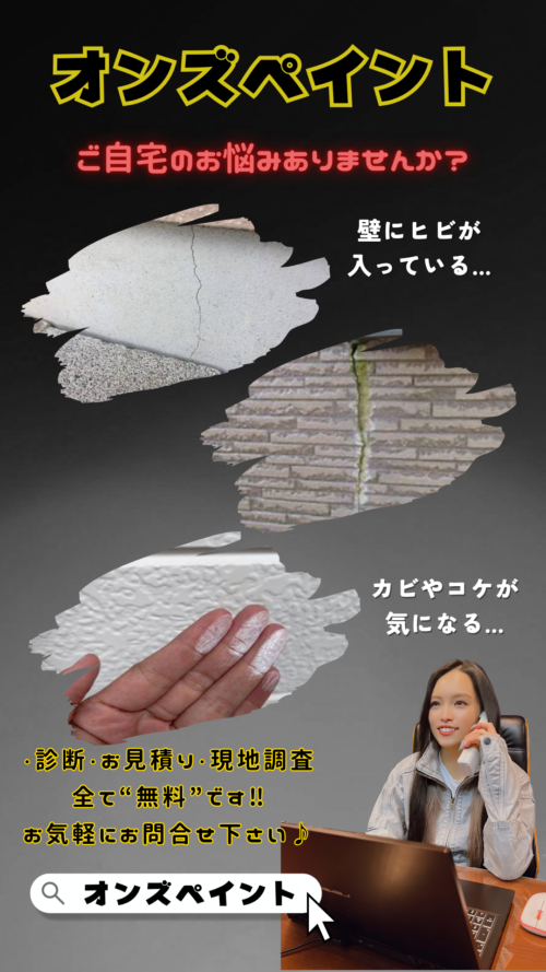 2025.10.27 ご自宅のお悩みありませんか?🏠ご自宅の外壁にこんなお悩みありませんか? ・壁にヒビが入っている ・カビやコケが気になる ・手で触ると白い粉がつく(チョーキング現象) これらは外壁塗装の劣化のサインです! 放っておくと雨水の侵入や建物 […]